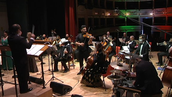 Sul palco con Santino Spinelli, probabilmente il più grande esponente della musica Rom in Italia, anche i figli Gennaro al violino solista, Giulia al violoncello ed Evedise all’arpa classica, le cantanti soprano Bianca D’Amore e Federica Serpente, e il tenore Nunzio Fazzini. Insieme gli artisti hanno dato vita a una celebrazione che ha raggiunto l’apoteosi nel momento sublime del canto lirico, sulle note di brani come Paquito e Romanò dives, una vera e propria elevazione della musica identitaria, quella romanì, a livello sinfonistico. Un concerto inclusivo che si muove oltre i confini etnici, che unisce molteplici stili che per la prima volta nella storia della musica occidentale si incontrano sul palcoscenico, e che in queste differenze trovano la loro massima esaltazione.